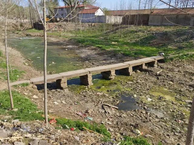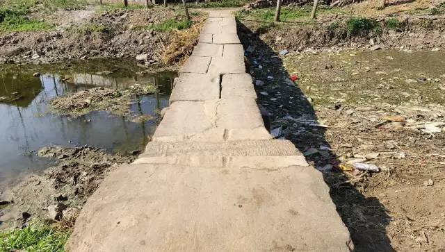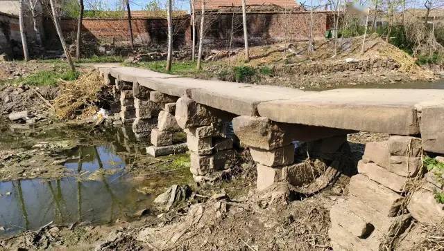 据村内八十五程姓老人讲,他小时候就听他爷爷讲就有石桥在,此河面有东西两座石板桥,东面为单石板宽有一米二左右,根据东石板桥上车辙推算,东边石桥在二百年以上历史。东面石桥为七空六墩,桥面有七块大石板铺成,从中间车辙就能想想当时此桥为主要通道,,东面石桥北岸,有一口用红石板叠垒而成的古井,深有3米,井边石板上有长年打水留下的麻绳磨痕可见,西边石桥为多块大石板铺成,桥墩为表面多块条石,叠加而成,没有水泥加固痕迹,桥梁为人工加工槽口,正好卡住两块石板,非常坚固,从红石板推算石桥取材自黄庄西大石塘,两座石桥,虽然没有赵州桥之伟岸,但在村民心中,石桥就像一位老者一样,受村民尊敬,石桥见证着,村庄的发展,桥上走过的一代又一代人,老石桥就一直守护着村民一辈又一辈,家乡的老石桥,以自己成全了岁月,家乡那一处处景,一处处物,无论时间怎样侵蚀,都是在外游子们记忆中童年里不可磨灭的风景。