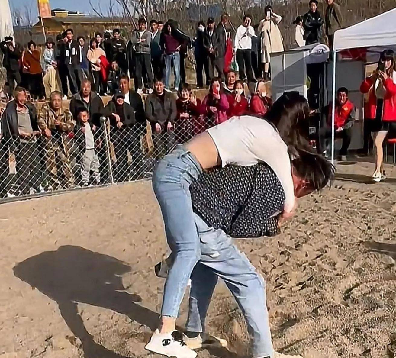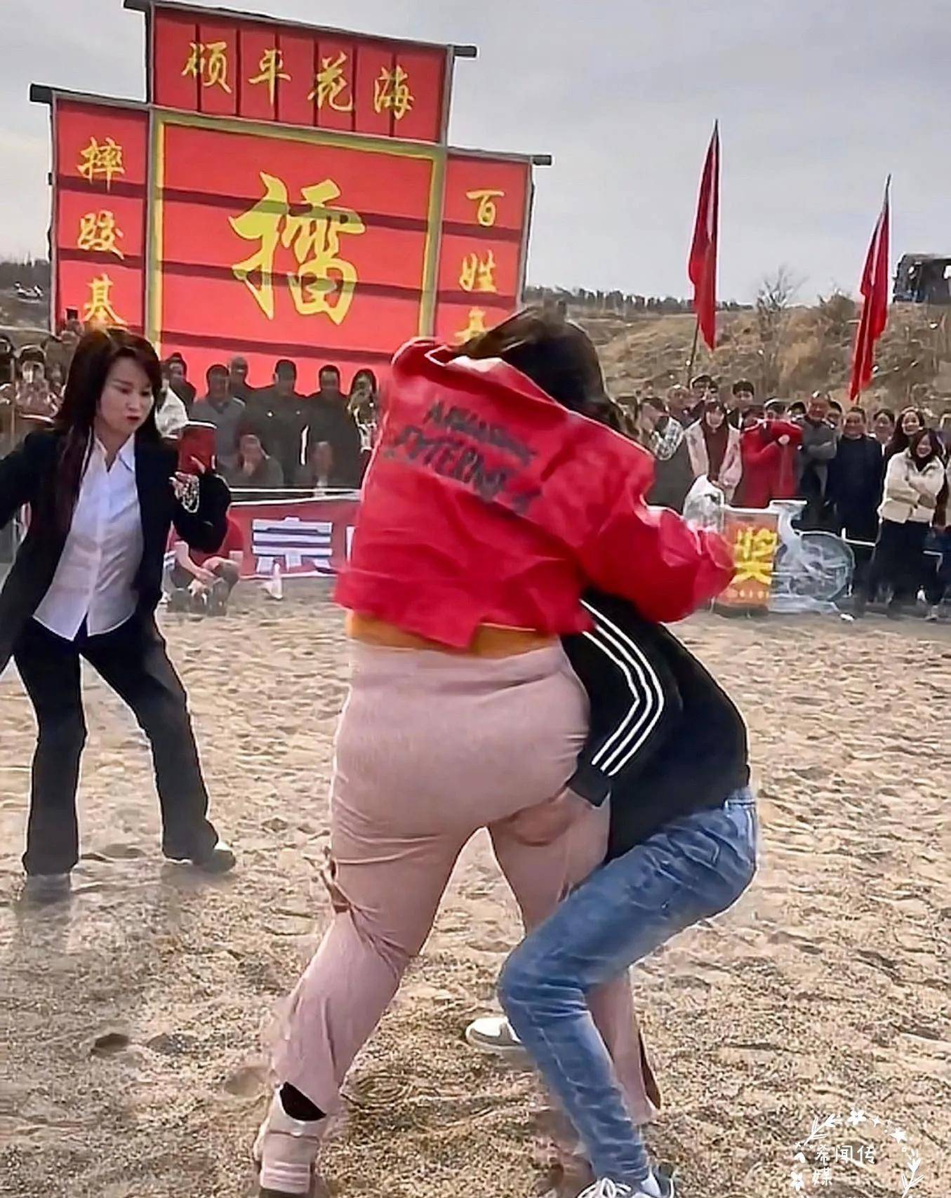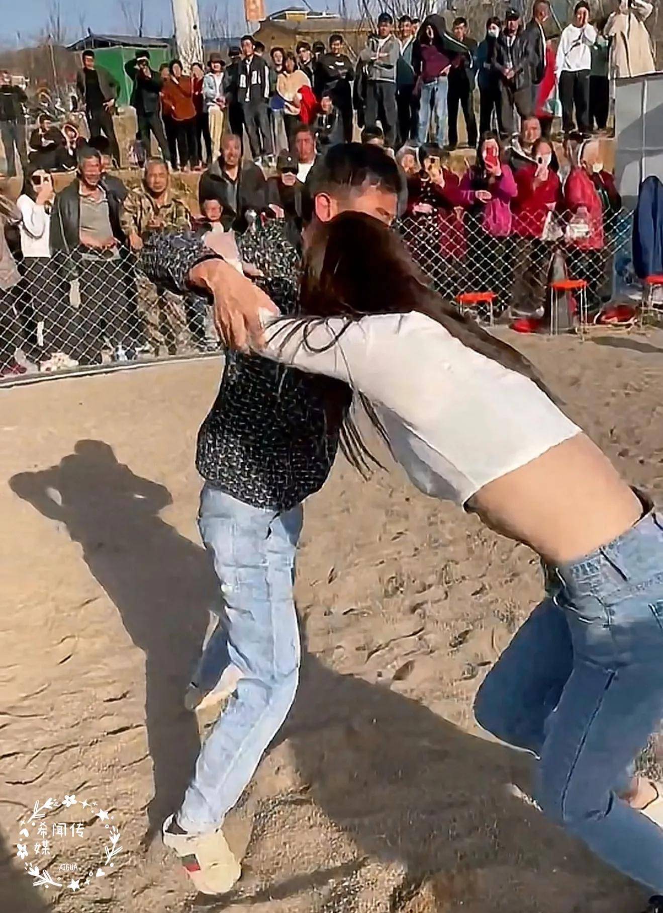 但是不知道什么时候在刷抖音的时候变成了民间的“游戏”,在摔跤之前还要跳一段流行舞,更加奇怪的是摔跤手是男女混摔。