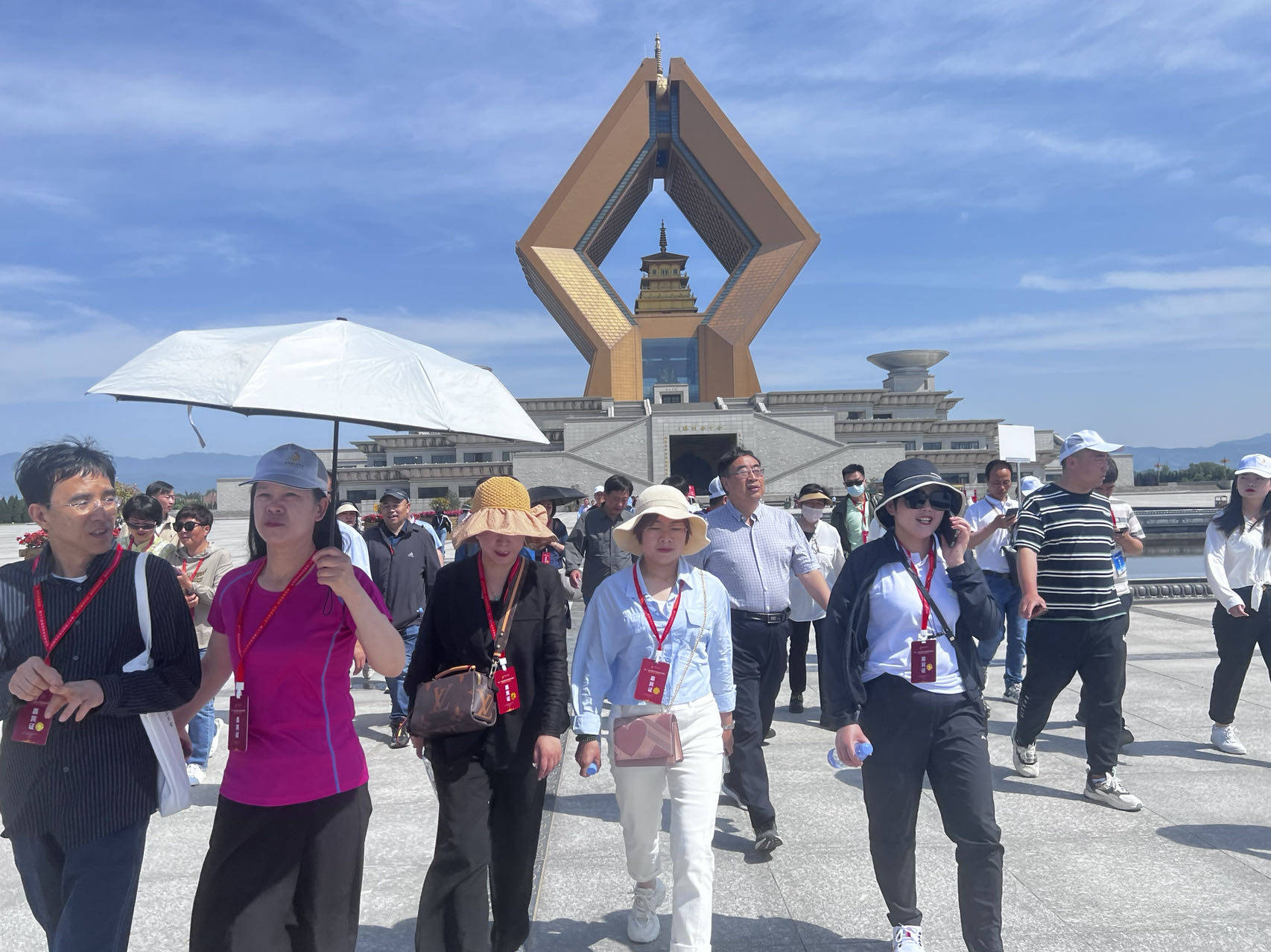 2023年5月15日,“看中国·来宝鸡”山水文化旅游采风团一行120余人走进法门文化景区开展采风活动,共同感受景区悠久的历史文化。