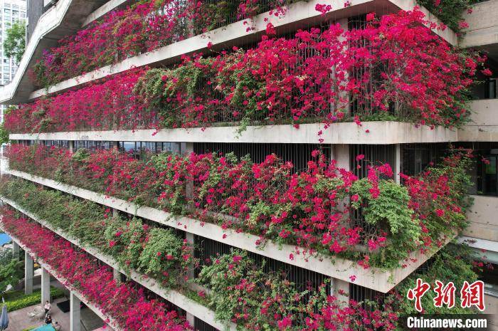 原标题:重庆:上万株三角梅扮靓写字楼 一层一景美不胜收