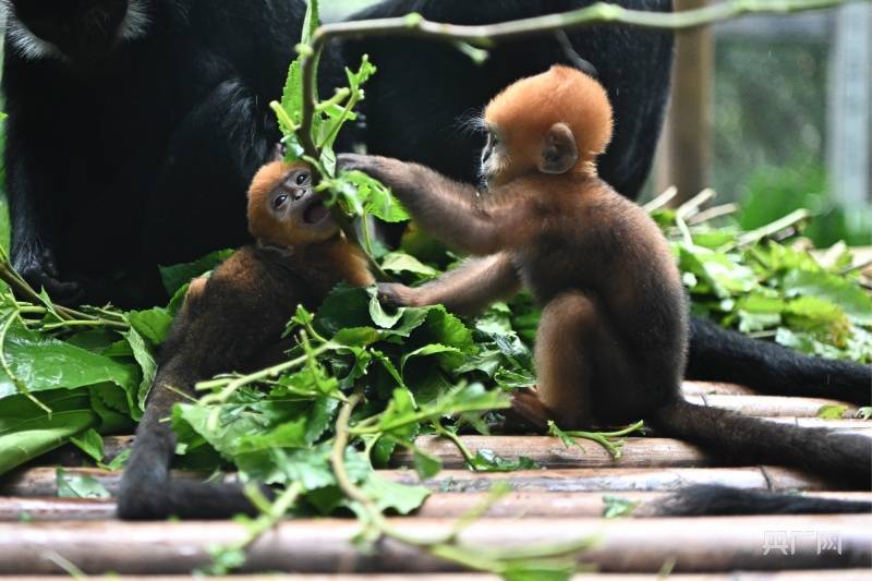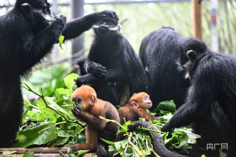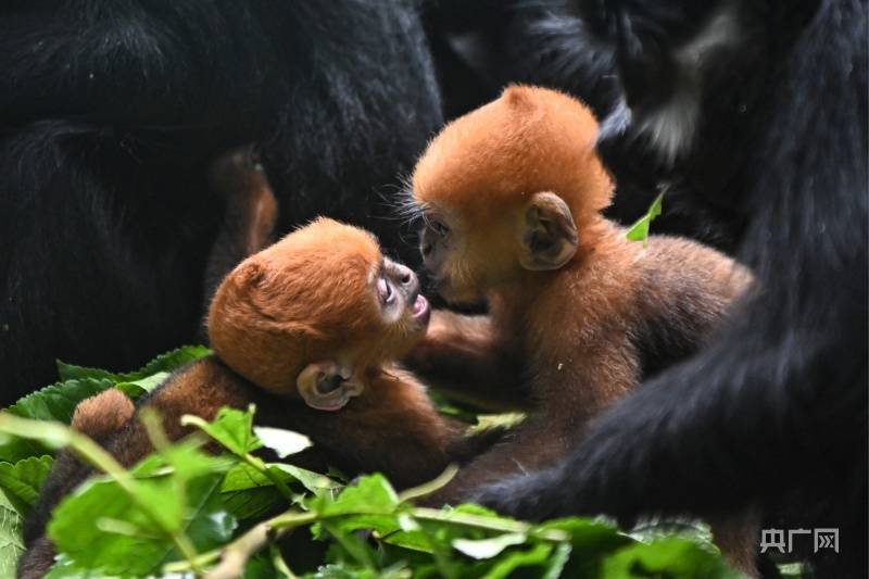 黑叶猴宝宝“想你”和“花园”(央广网记者 官文清 摄)