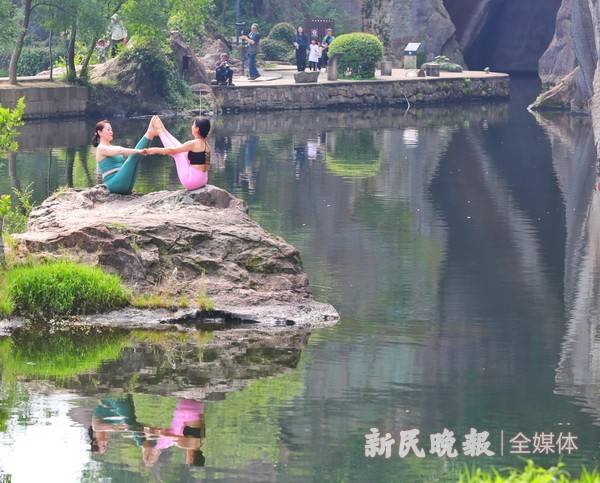 图为瑜伽爱好者进行“‘瑜”你相聚东湖”活动