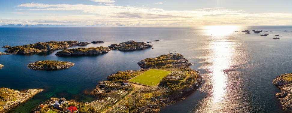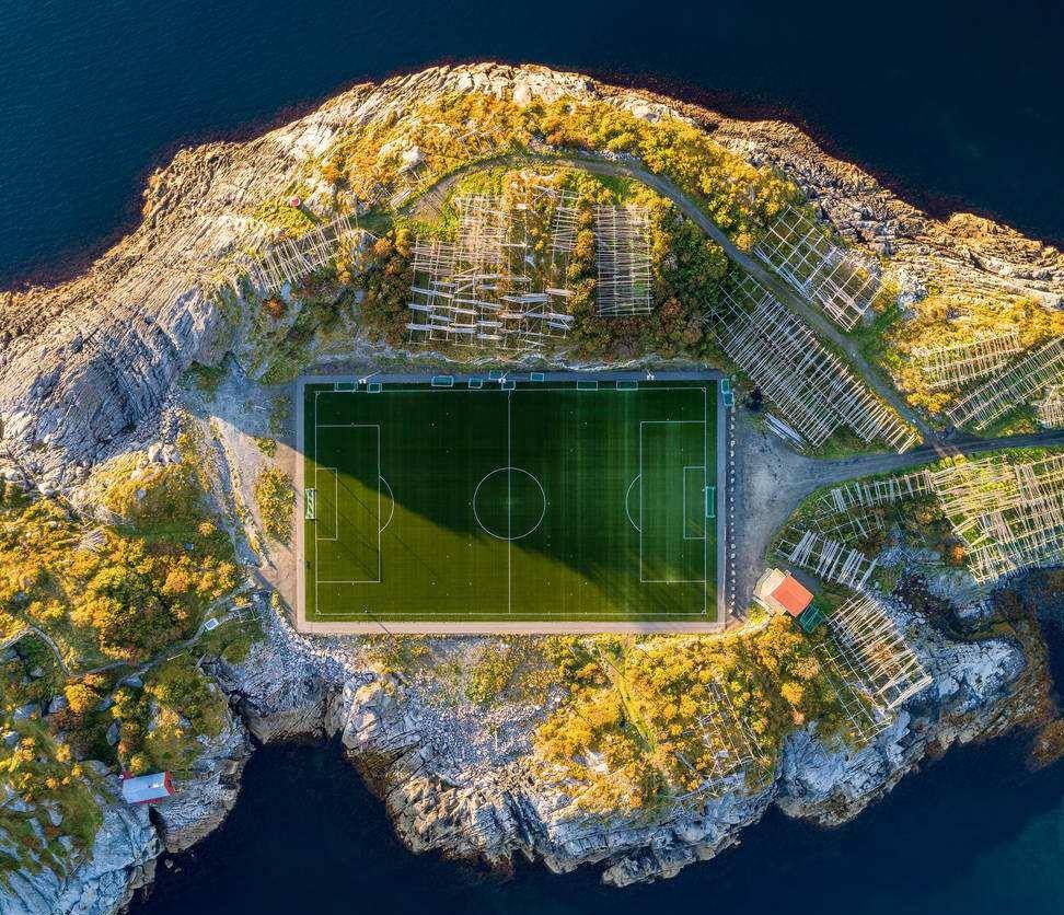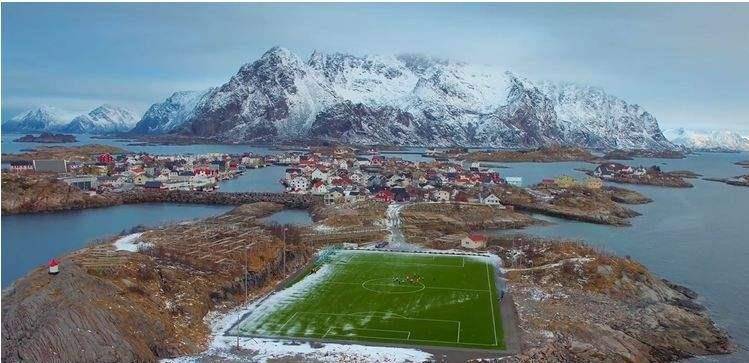 在这个小岛上一共生活着五百多人,最初修建这座足球场,只是为了能让这里的孩子有一个娱乐的地方。当地人花费了100万欧元,用了两年的时间,在将这座足球场修建完成。因为这个足球场所在的地方正好位于北极圈当中,所以在这里还能看到很多在平时所看不到的美景,而俯瞰这座足球场时,就像是外星人的杰作一样,看上去如同“麦田怪圈”。