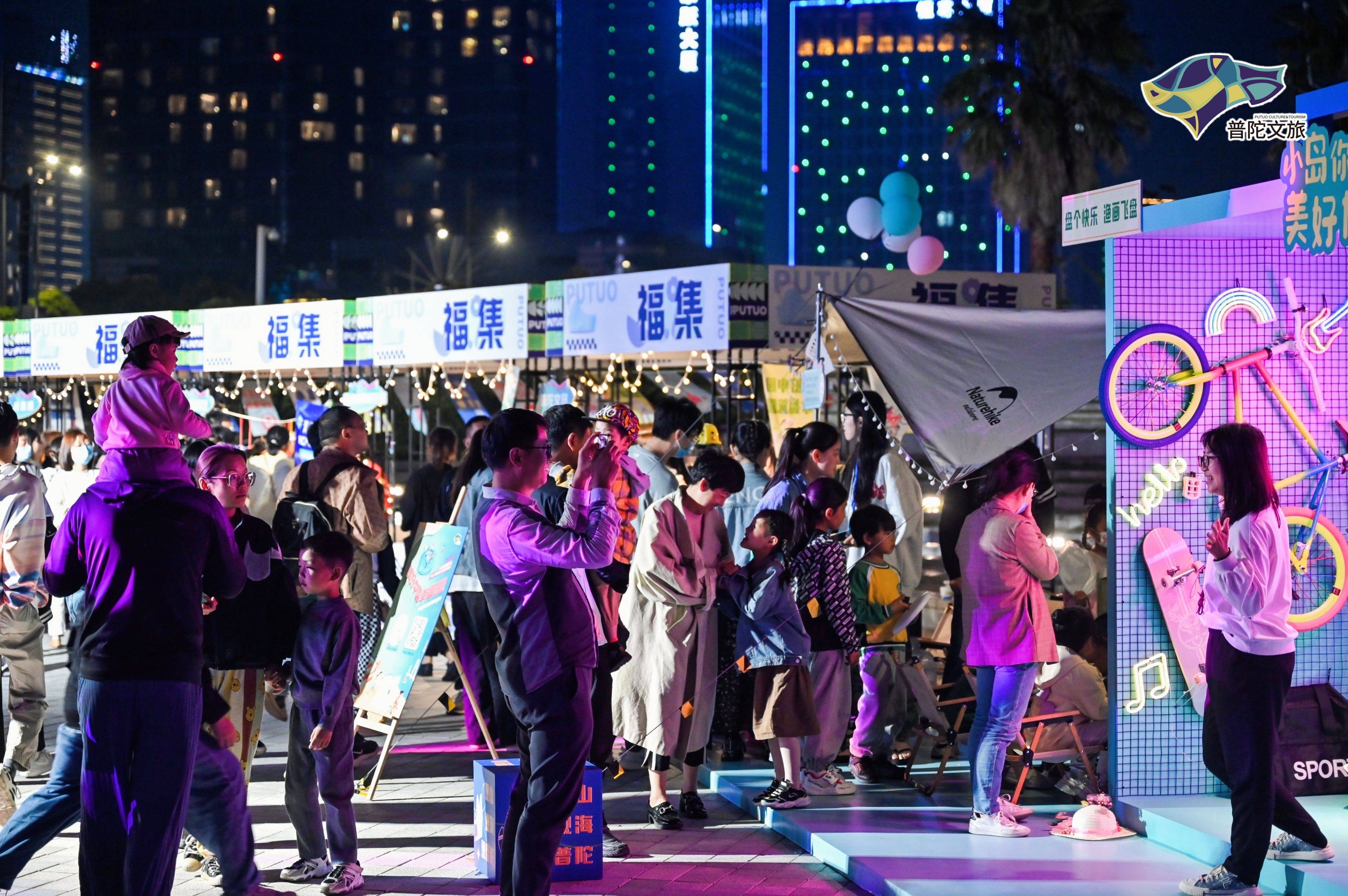 活动现场引入普陀海岛特色“福集”,琳琅满目的非遗展示,多元化的市集业态,舌尖美味的百县千碗,让游客体验普陀特色文化风物,激活文旅消费“新引擎”。引入普陀佛茶私定、花式露营、渔民画飞盘等新业态,迎合年轻出行新需求的同时,打造一场普陀文化、艺术浸润的深度逛集新体验。