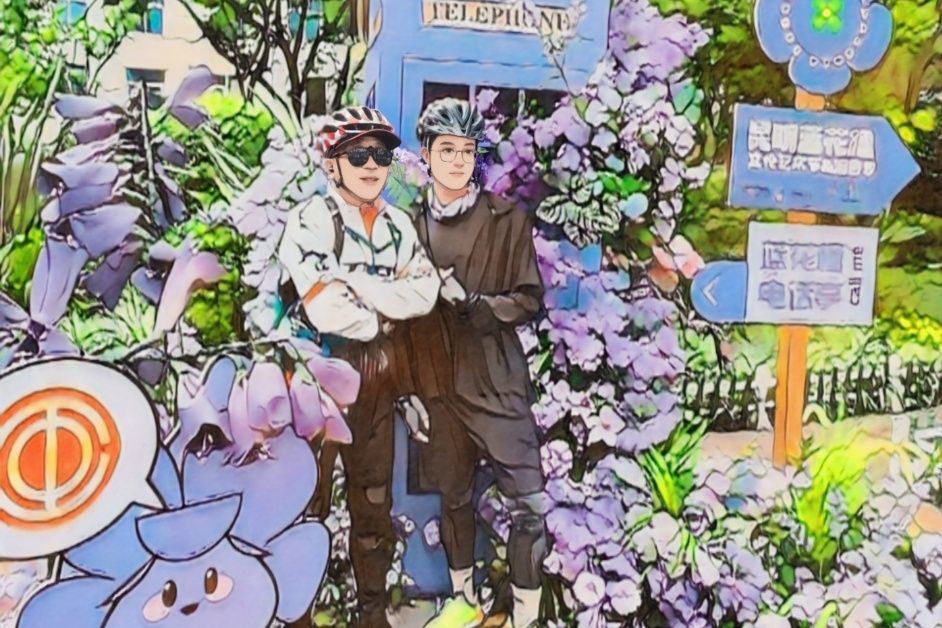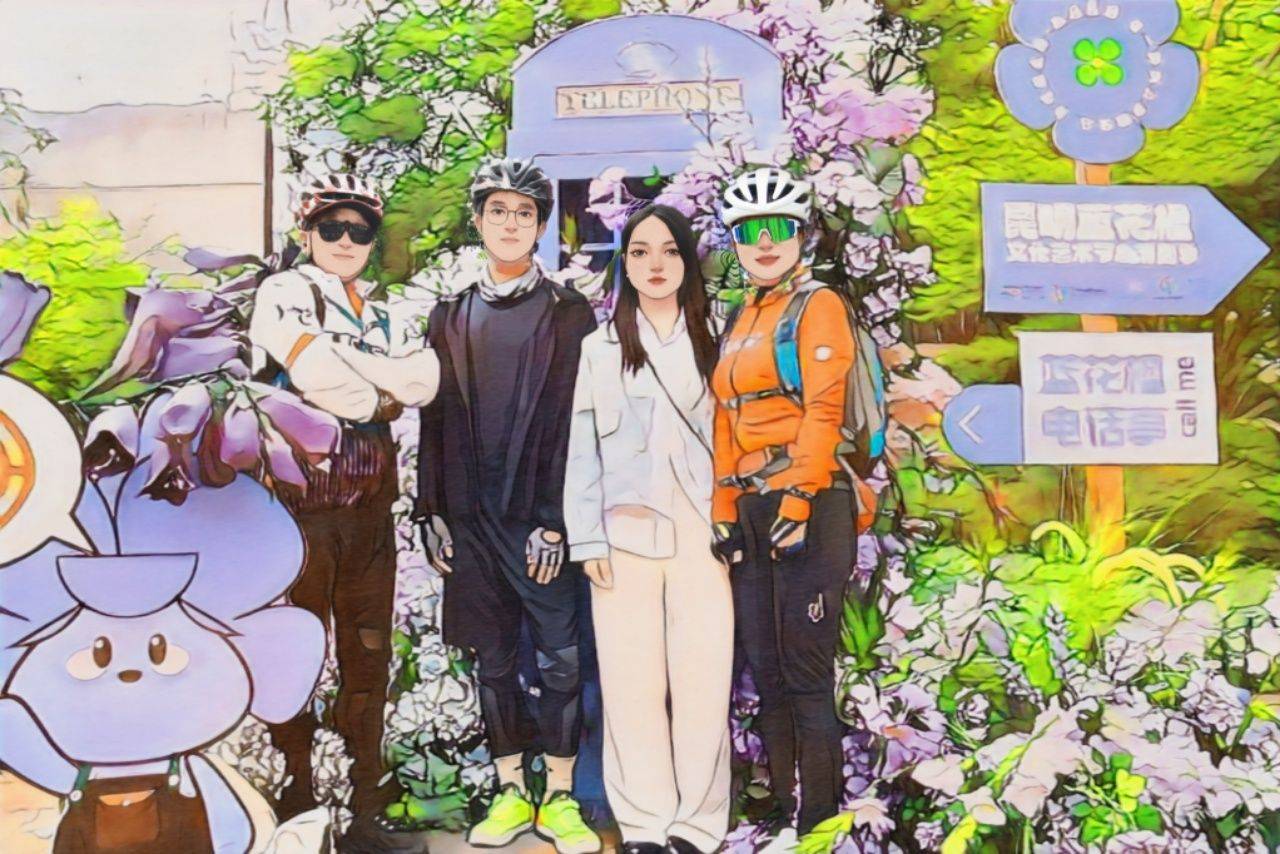 除了美学价值和文化底蕴外,蓝楹花还对当地居民和城市文化产生了深远的影响。作为昆明教场中路的标志性植物,蓝楹花不仅美化了城市环境,还成为了骑友心中的精神寄托。每年五月,许多游人会在蓝楹花下合影留念,今天也不例外,拍摄,直播的旅人一路铺开,并记录下这个美好的瞬间。