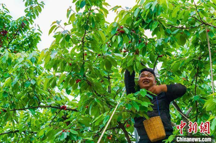 中新网兰州5月15日电 (刘玉桃 高展)5月中旬,走进甘肃省陇南市成县小川镇西狭村,大樱桃如玛瑙般星罗棋布挂满枝头,晶莹剔透、令人垂涎。果农穿梭在樱桃树间采摘,摘果、挑拣、装盒……忙得不亦乐乎。