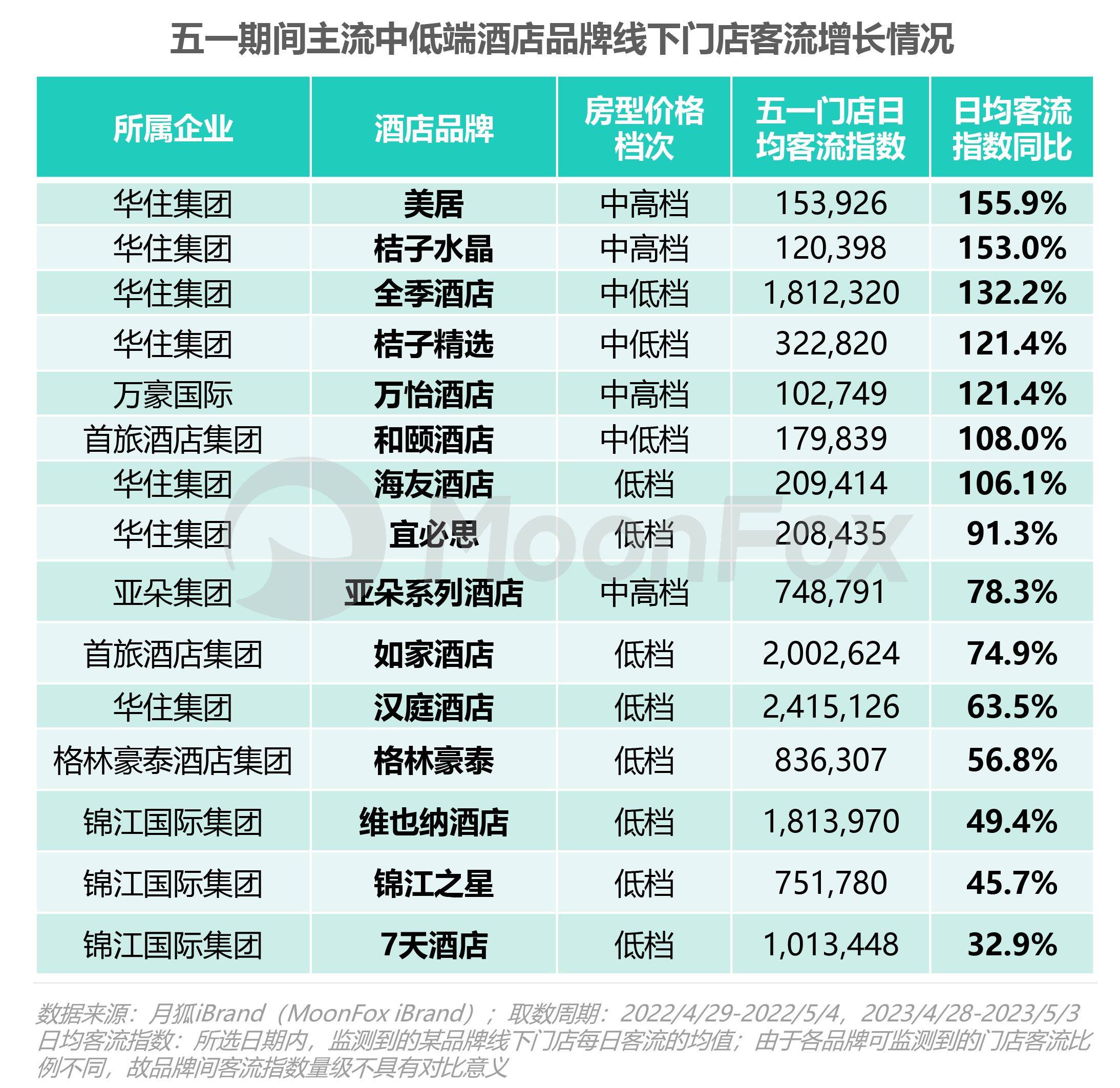 主打中端酒店市场的华住集团旗下多个酒店品牌在五一期间线下门店客流迎来快速增长