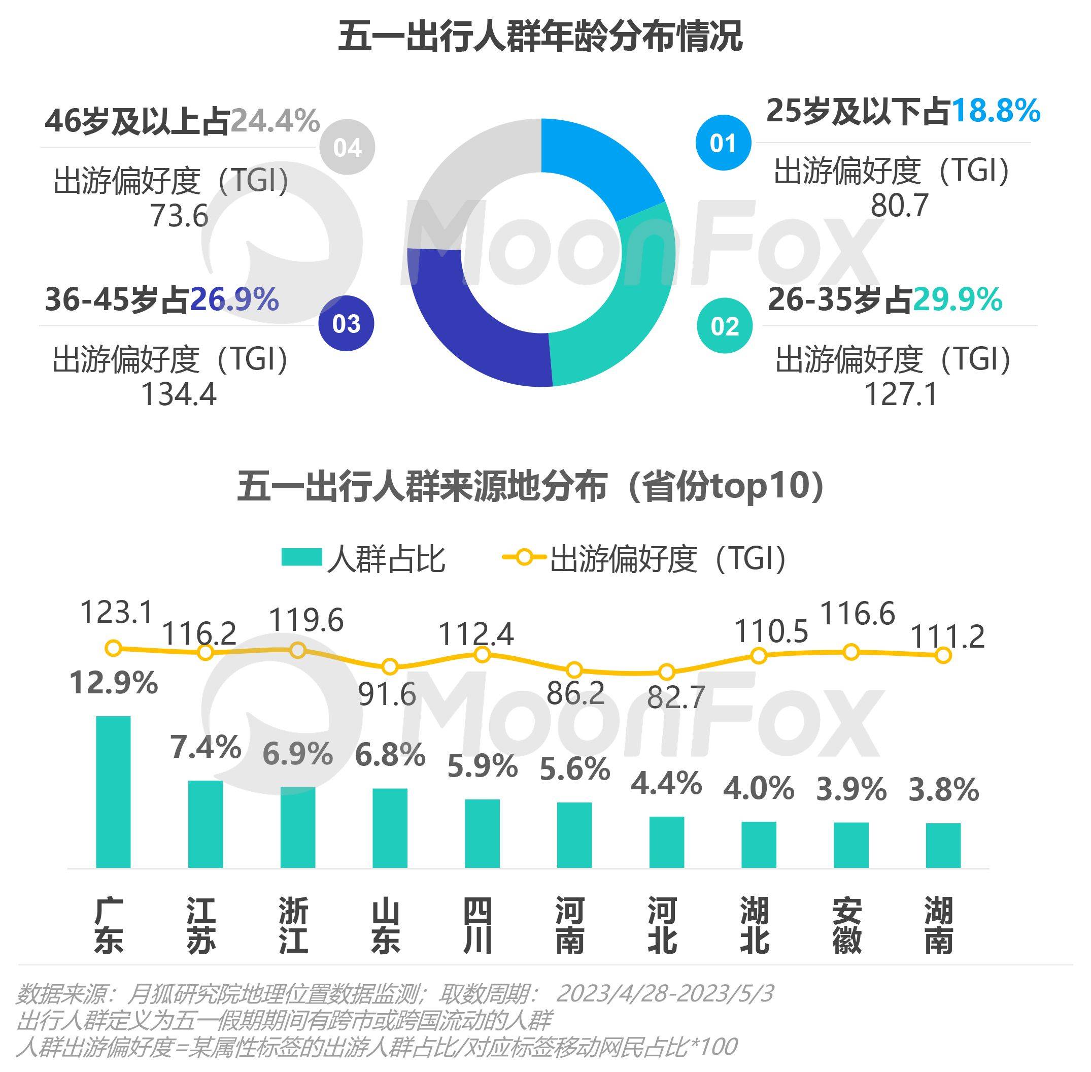26-35岁人群成五一出行主力军,广东、江苏、浙江等省份具有最大规模五一出行客源