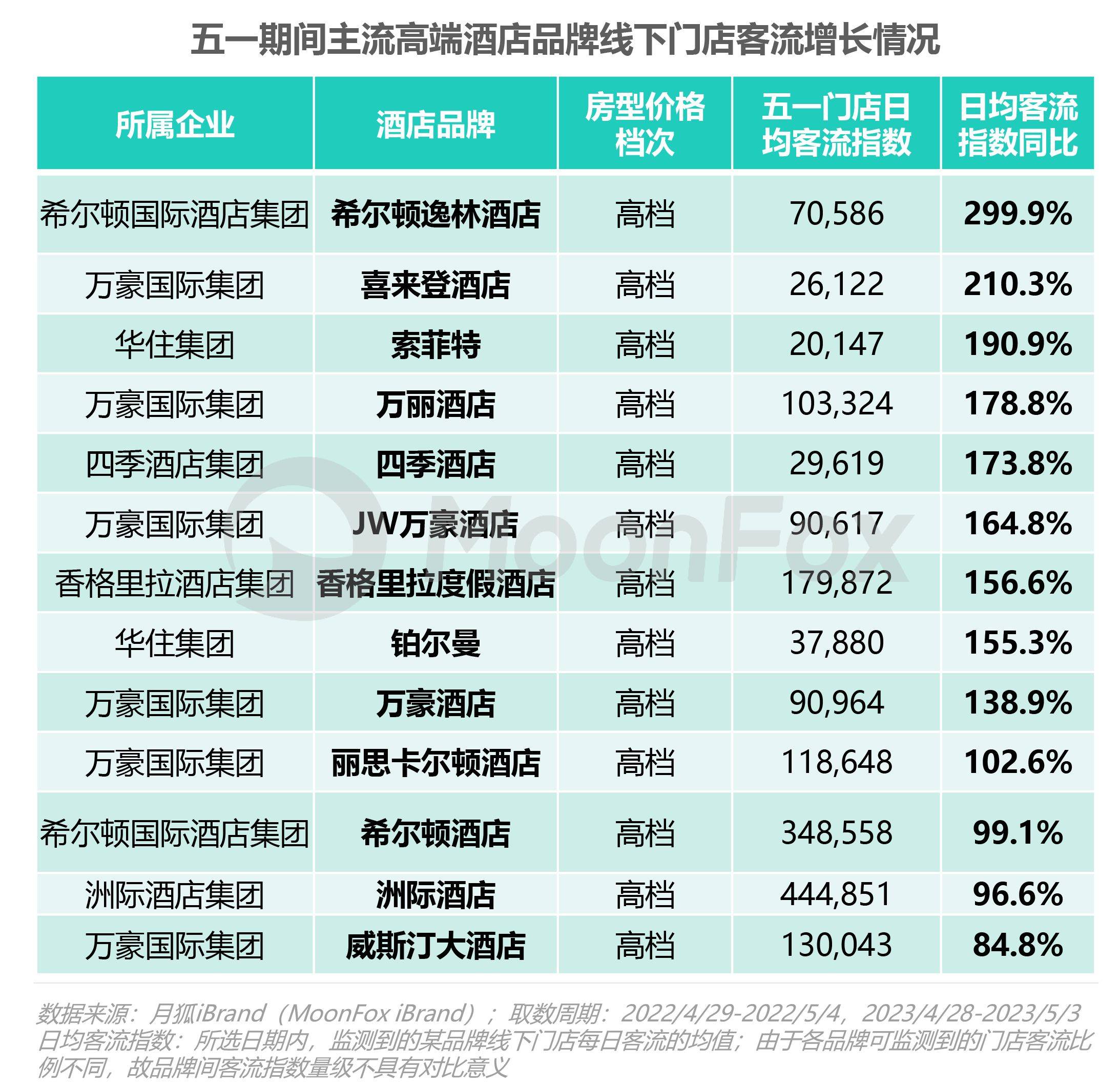 今年五一高档酒店消费需求高涨,国内多家高端酒店品牌线下门店客流同比增速超100%