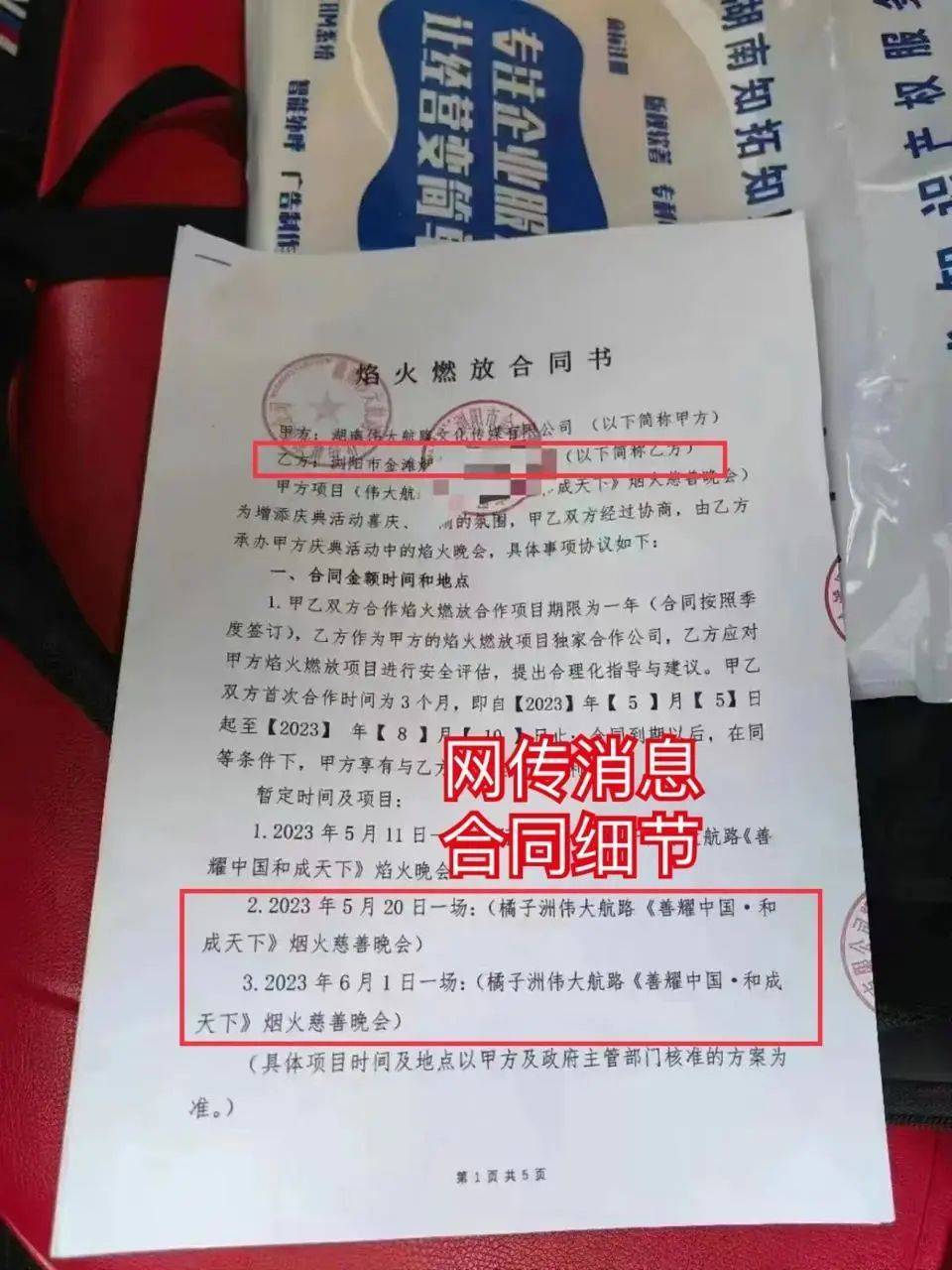 近日,网传的一份“焰火燃放合同”在社交平台流传极广,合同透露长沙橘子洲将燃放3场焰火,其中5月11日场次已经燃放,而另外两场网传是5月20日和6月1日。