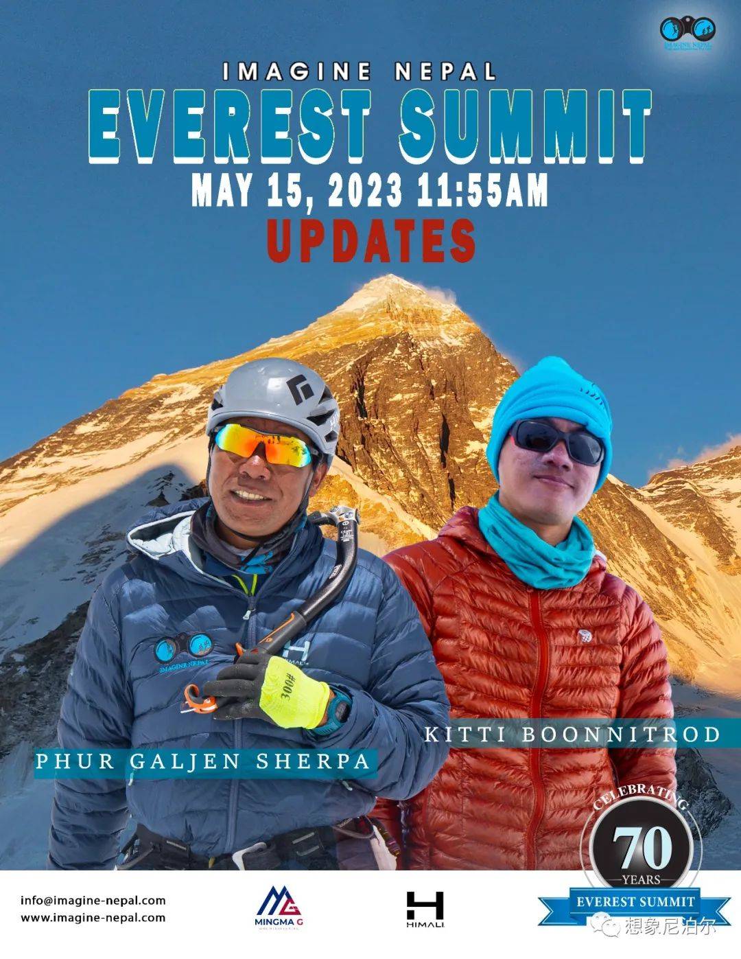 我们的队员泰国登山者Kitti Bonnitrod和夏尔巴Phur Galjen于2023年5月15日尼泊尔时间早上11:55成功登顶8848.86米。