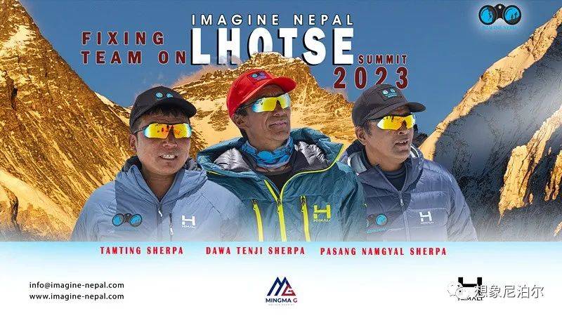 同珠峰一样,今年洛子峰的修路工作也由想象尼泊尔团队负责。想象尼泊尔三位经验丰富技术精湛的夏尔巴向导不负众望,于2023年5月15日尼泊尔时间下午12点50成功铺设路绳至顶峰,他们是: