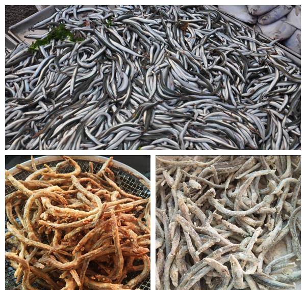 天气暖和后,这两种鱼变得稀少起来,本地人都说:这两种鱼一年只吃一茬,错过只能等明年。面条鱼可以吃鲜,也可以晒干后爆炒,其中青岛人炸面条鱼是最为拿手菜,将鱼内脏清洗干净,放入葱姜蒜料酒等腌制,让后用蛋清调配些淀粉,裹上一层后,放入滚烫的油锅中,烹炸至金黄色,出锅后外焦里嫩,咬一口鲜美至极。当然新鲜的面条鱼也用来炒韭菜鸡蛋。在过去渔民将其晒干后储存起来,到了农忙时节再拿出来用辣椒爆炒,开胃下饭。