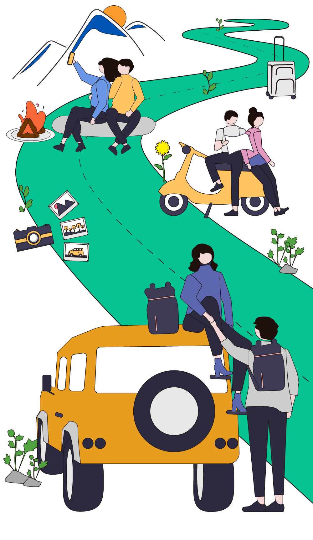看花海、逗萌宠、开卡丁车、住帐篷、吃烧烤/土著宴、跳篝火舞、露营……