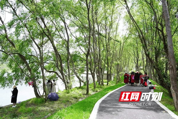 来自长沙市天心区的游客张女士主动给来客介绍:在鸟鸣中醒来漫步河岸步道,清风拂面感觉身体每个毛孔都在唱歌……