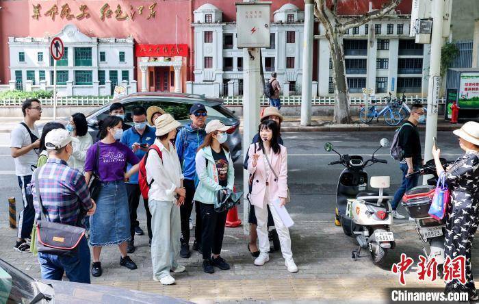 志愿讲解员,带领游客开启汉口历史风貌区的“走读之旅” 张畅 摄
