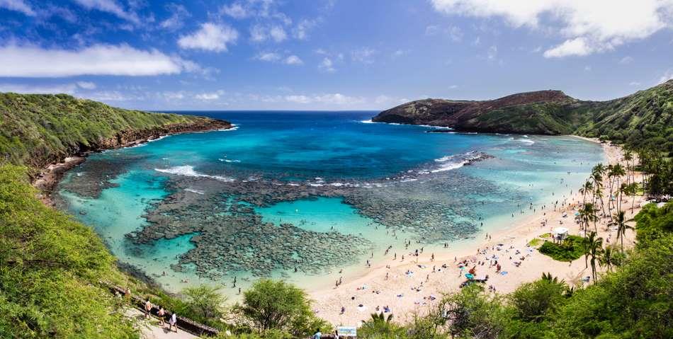 6.夏威夷,瓦胡岛,哈娜乌玛湾,它位于美国夏威夷瓦胡岛上最幸福的一个州,是一个受保护的海洋生物保护区和水下公园。哈娜乌玛湾是潜水者的天堂,因为那里有数百条热带鱼和海洋生物点缀在水面上。这个由火山形成的美丽海湾被选为美国最好的海滩。