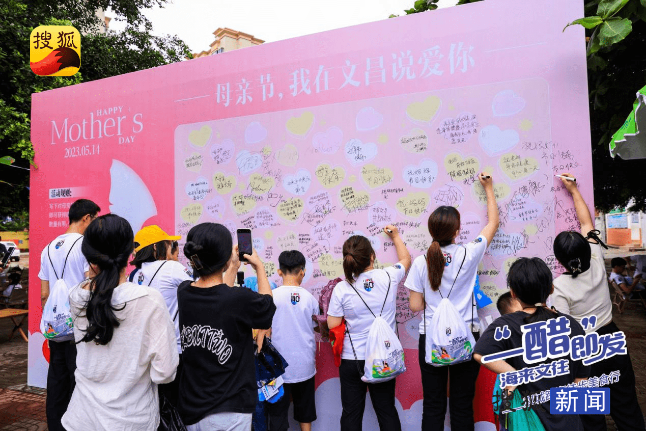 当天正值母亲节,活动现场还举办了“母亲节,我在文昌说爱你”活动,市民游客在留言墙上纷纷写下对母亲的爱意和祝福,现场充满了温馨和感人的氛围。