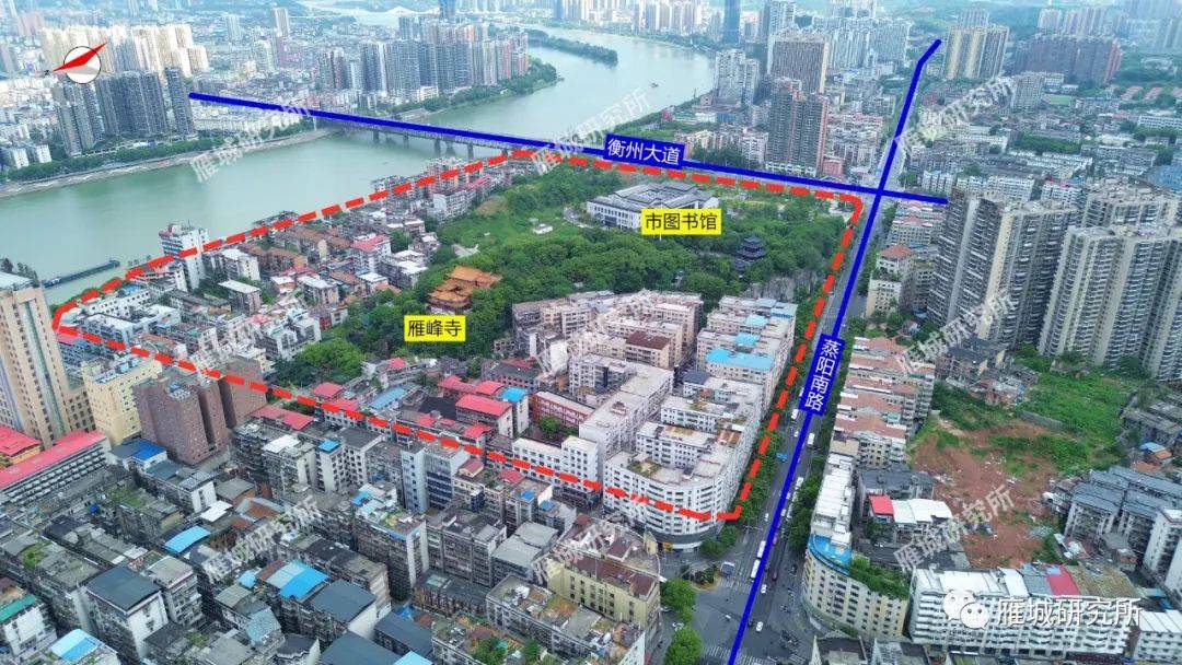 拓展范围:向外拥抱岳屏公园、衡阳抗战纪念馆、岳屏广场、铁工校老体育场、中山南路老街区、王衙坪、学宫苑、泰梓码头,形成蒸湘南路以东、衡州大道以北、湘江南路以西、解放大道以南的历史文化风貌区域。