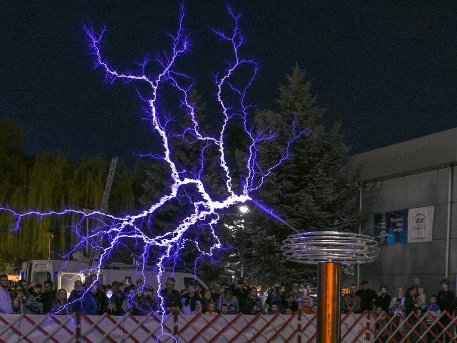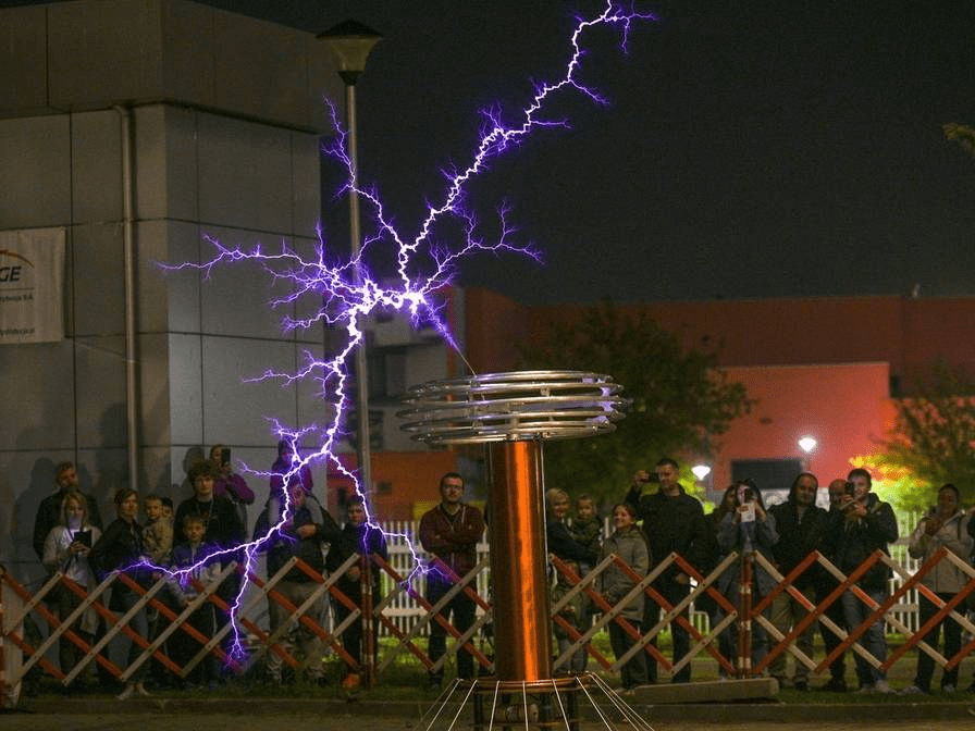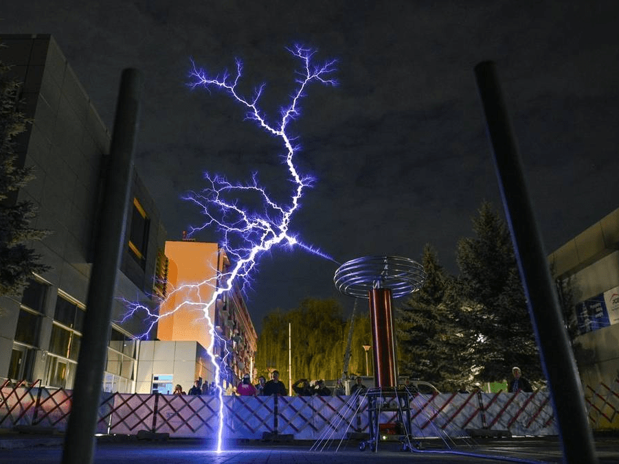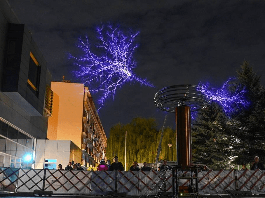 波兰热舒夫,在当地举行的“博物馆之夜”期间,展示的“特斯拉线圈”。