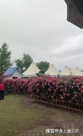 “蔷薇花墙”其实就是蔬菜园的围栏,单一品种的红色的蔷薇花,不同于杨浦滨江“蔷薇花墙”的品种已经凋落大半,这里的蔷薇花正是盛花期。