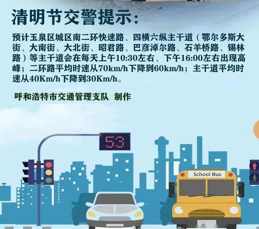 清明节假期间,据天气部门预测呼和浩特市以阴天为主,出行自驾人员将明显增加,青城交警温馨提示,出行一定要注意天气变化,提前了解路况信息,谨慎驾驶机动车,安全出行。
