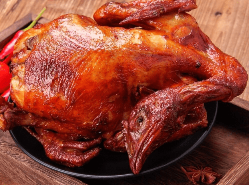 山东德州扒鸡[5],是一道有着悠久历史的传统美食。这种烧鸡选用当地的土鸡,以葱姜蒜为主料,加入花椒、豆瓣酱等多种配料烹制而成。烧鸡外皮金黄酥脆,内馅鲜美多汁,让人垂涎欲滴。