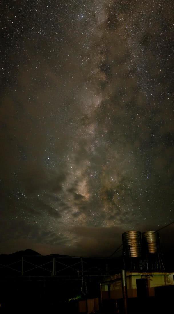 太阳能水塔与银河,浓浓的农家乐风味,却在这很轻松,就能感受银河的磅礴与宁静。