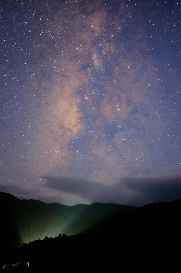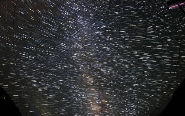 躺在农家乐的阳台上,看这银河的变换绘成星轨。