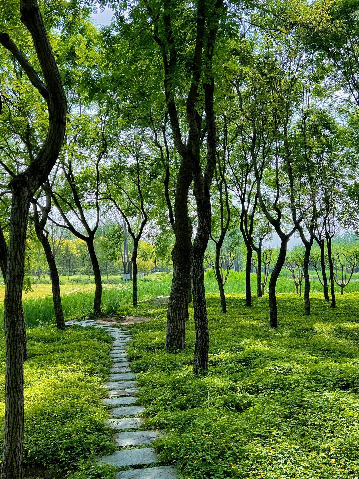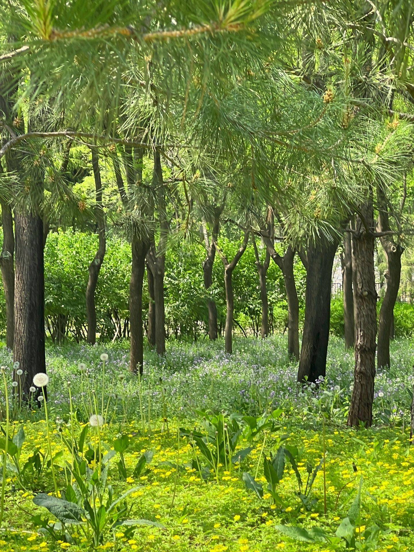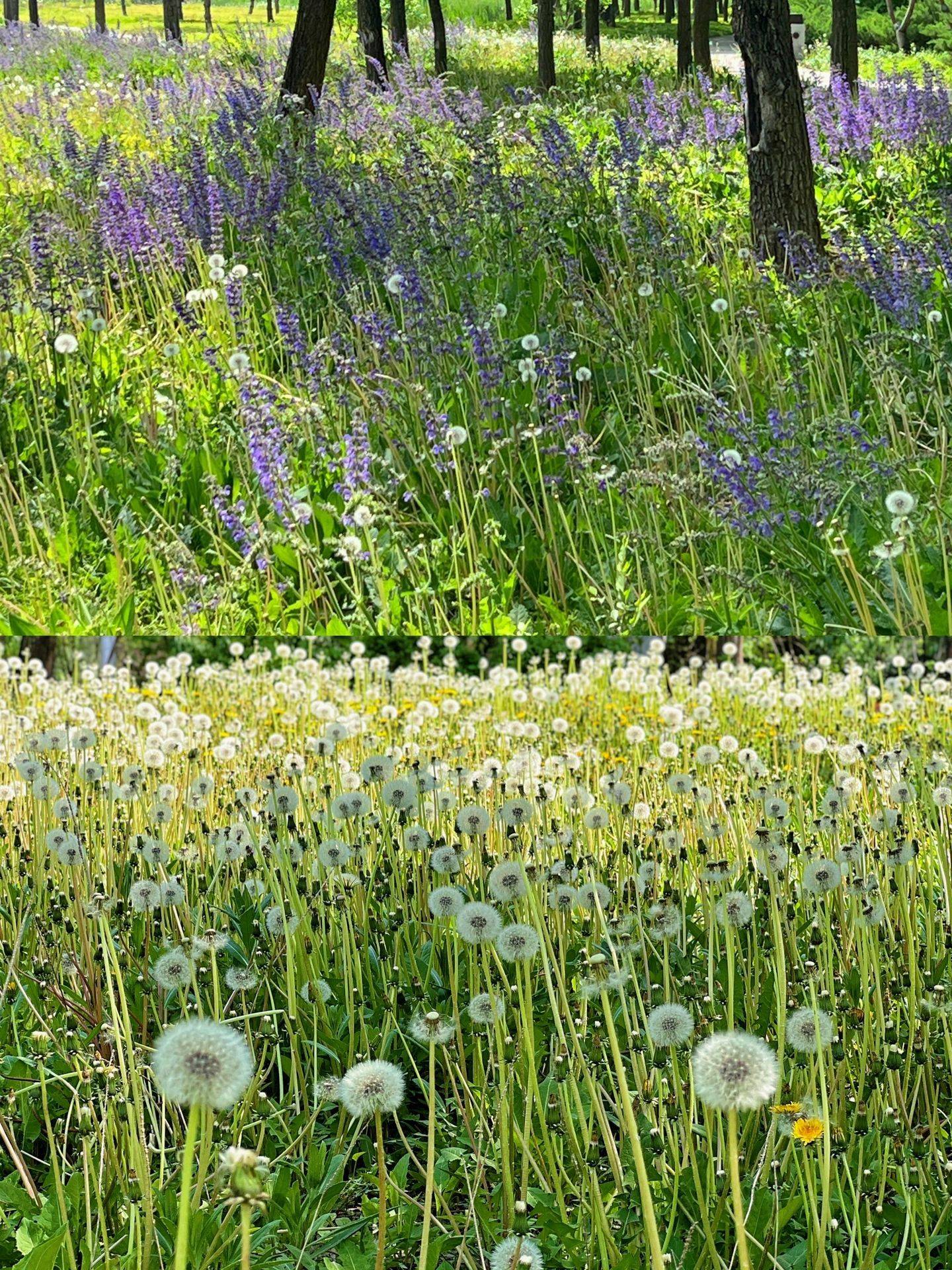 北区则是一片葱茏的树林和曲径通幽的小路,满地绽放着成片的蒲公英和迷人的二月兰,让人仿佛置身于诗意的仙境之中。