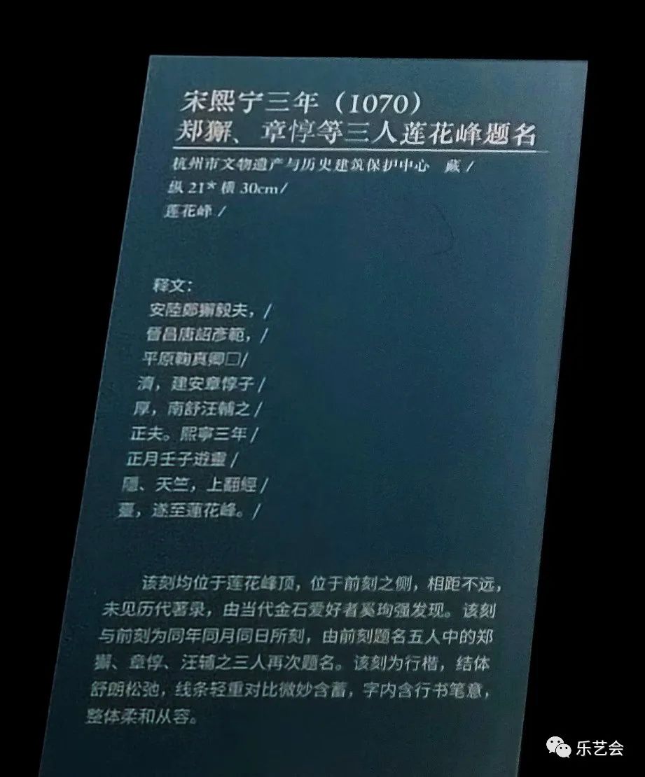 本单元展品中,唐天宝六年(747)源少良等神尼舍利塔题名、唐永贞元年(805)王澹等天竺寺题名、唐萧悦等天竺寺题名、吴越天福四年(939)冷求李安开路记、宋熙宁三年(1070)郑獬章惇等莲花峰题名等均为历代无考品或失落已久的题刻,由当代摩崖爱好者奚珣强访获,并在本次展览中首次面世。