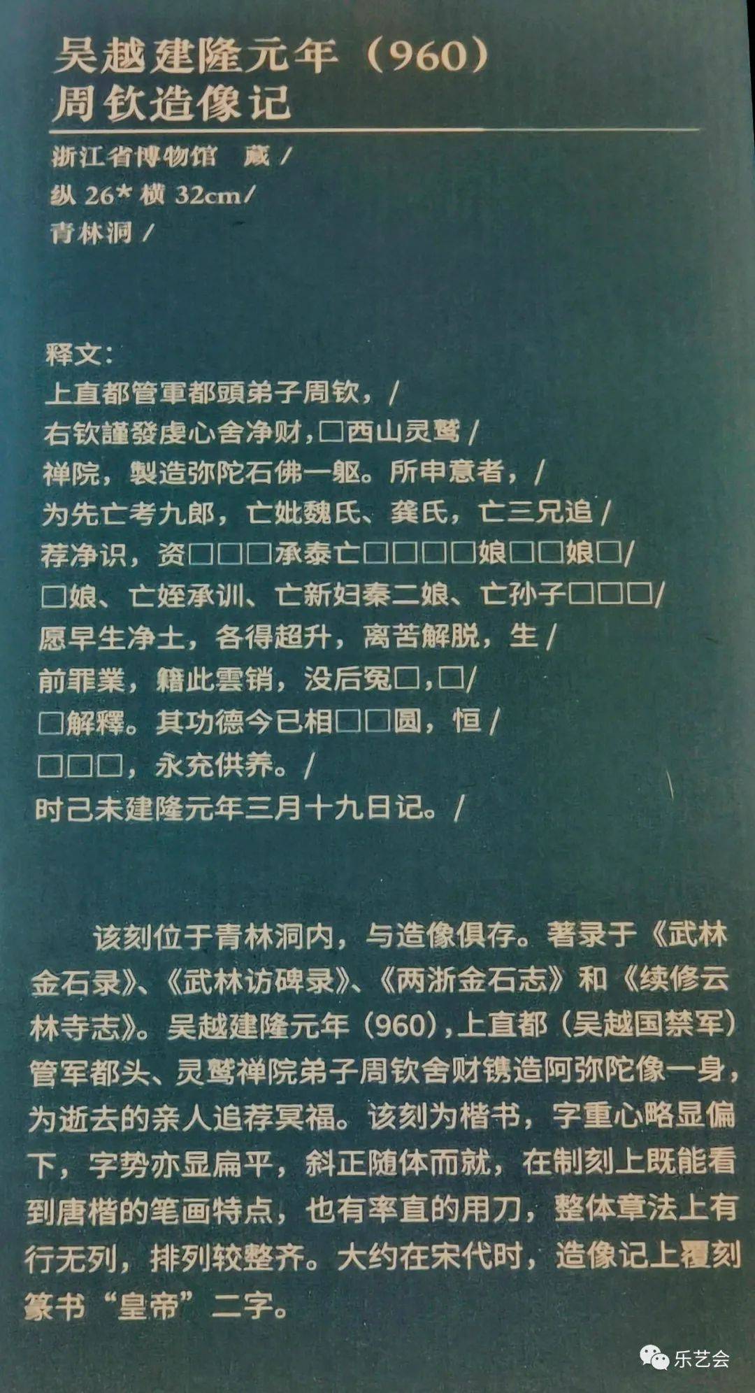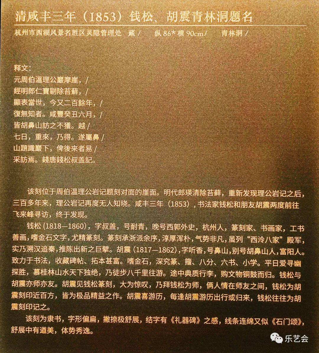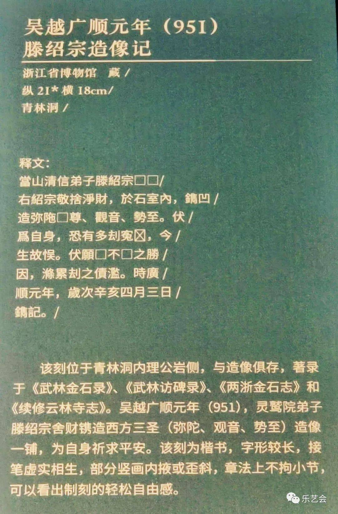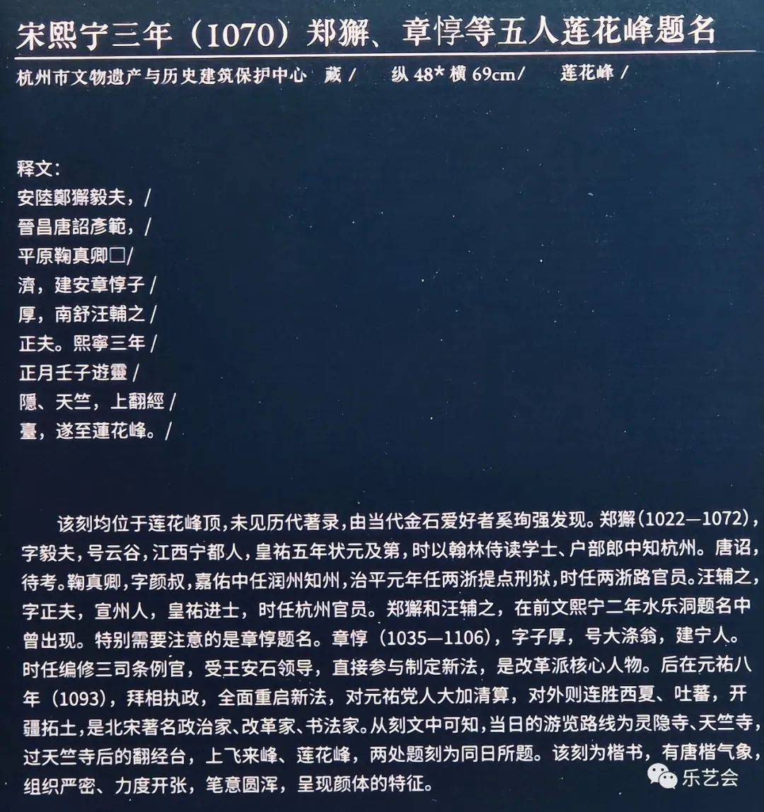 自五代吴越国至元代初期,飞来峰的东侧和北侧大量开凿佛教造像,元代时一度称为“佛国山”,是中国南方石窟造像最为集中的地区之一。飞来峰的摩崖题记,现存唐刻5处,宋刻50余处,总计多达300余处,是杭州乃至浙江摩崖题刻最为集中的地区。从题刻数量可以看出,飞来峰当之无愧为西湖第一名胜。该区域题刻,主要著录于《武林金石录》、《武林石刻记》、《武林访碑录》、《两浙金石志》、《续修云林寺志》中。
