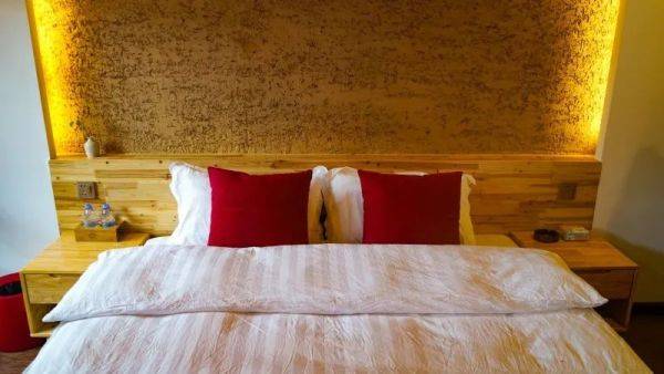 来源/小自然野奢度假村民宿室内以木色为装饰主格调,既保留了田野的朴拙,又有现代的精致与用心,木质家具搭配上现代化配套设施,竹子做成的毛巾架、木质的百叶窗帘和隔断,一派质朴和天然。
