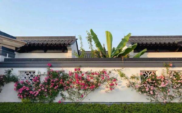 白墙乌檐,雕栏画栋,一步一景都在诠释着“江南”的文化意蕴。攀援的蔷薇花墙是景,不对称的亭台布局亦是风景。