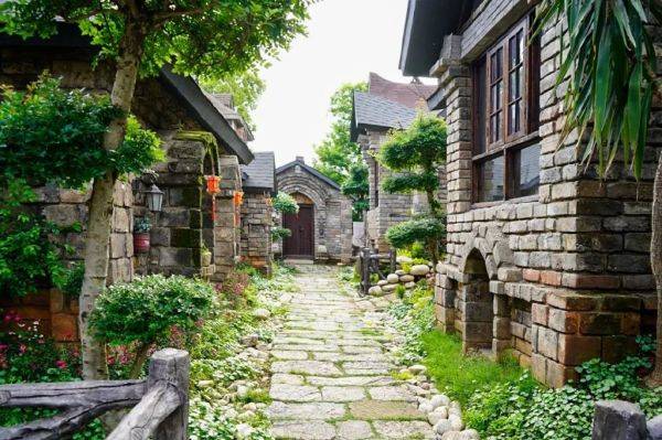 城堡内,十二生肖民宿按照古典风水的排列布置,门前小巧的路灯和四时鲜花极富浪漫童话色彩,外表看似粗犷,内部却都是以星级酒店的标准配置设施。