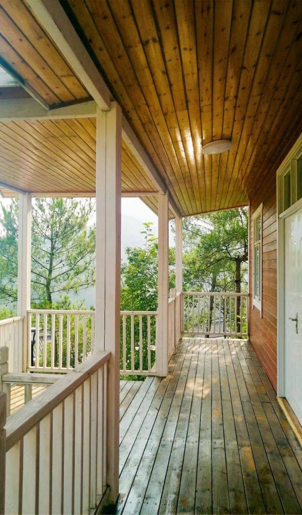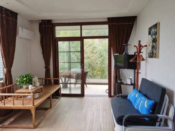 诗情画意的风景中,这里的每栋民宿也有着别致的名字:竹贤居、语林居、飞瀑居、过云居……从房间的观景台远望,青山葱郁,视野十分开阔。