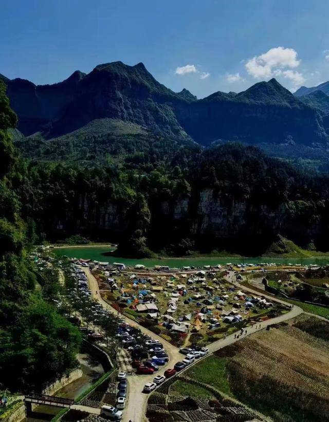 这是重庆露营基地中的网红,地点在渝北区大盛镇天险洞村。