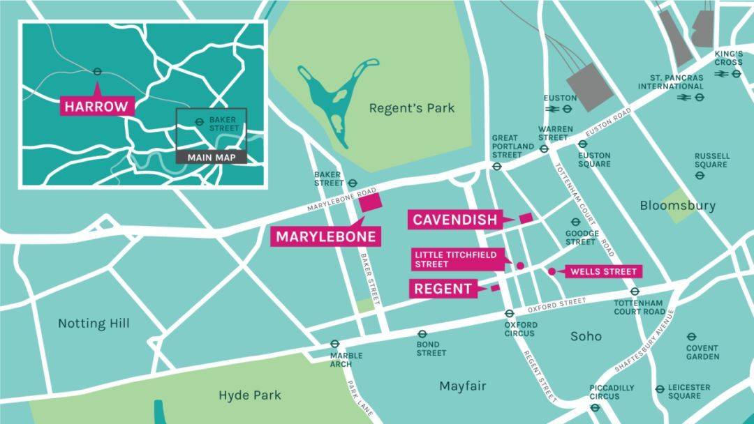 威斯敏斯特大学 共有四个校区,其中Cavendish Campus, Marylebone Campus, Regent Campus位于市中心,毗邻伦敦市中心和各大商务区、金融区、商业区、政府所在地、时装与文化街区。