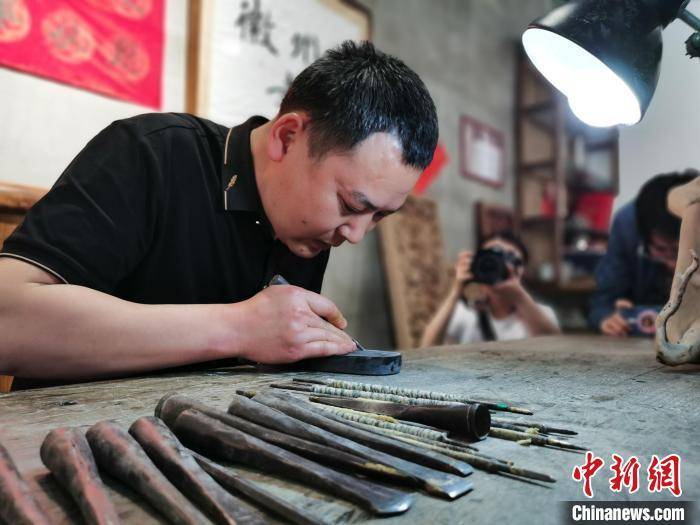 徽州木雕非遗传承人正在创作。 张强 摄