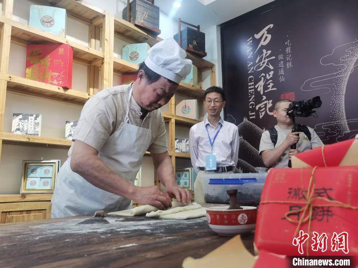 徽式月饼制作技艺非遗传承人正在展示技艺。 张强 摄