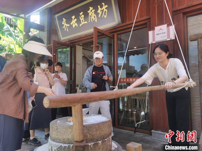 游客体验豆腐制作技艺。 张强 摄