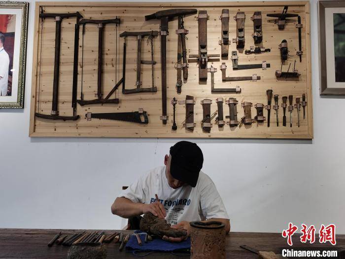 徽州砚雕非遗传承人正在创作。 张强 摄