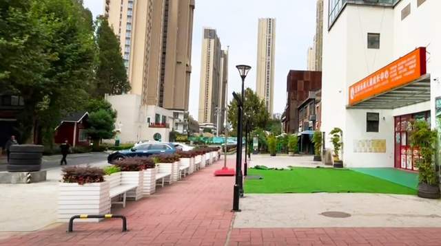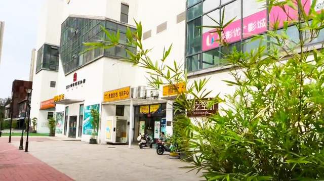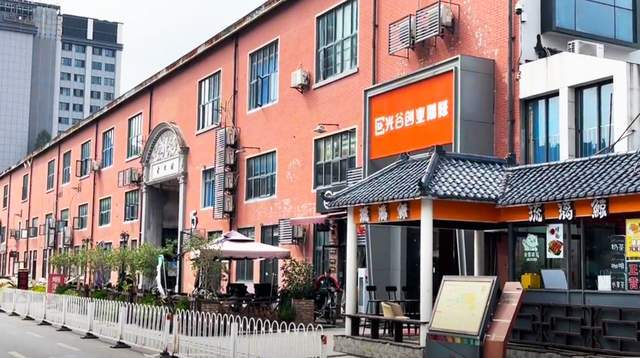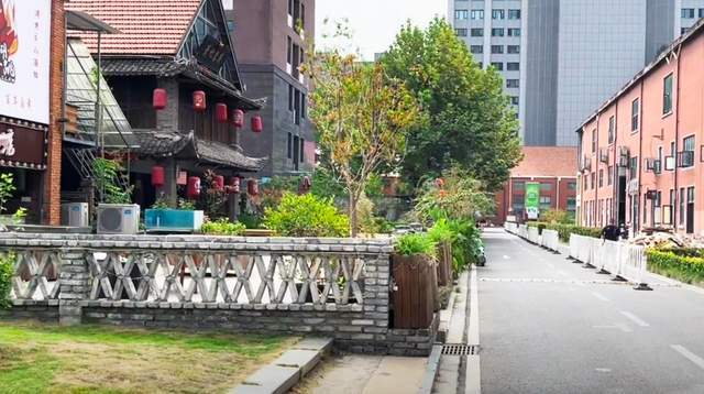 有意思的是,与笨笨的游客照比较,在此上下班的职工早就见怪不怪。常见的一楼商铺,副食店和超市多,门面不大,但装饰很低调,穿着工装的员工,在此间的几个商铺间来回。饭点时间已到,超市的员工出来到快餐店,快餐店的员工出来到超市,相互提着东西再回去;也有外卖小哥推车过来,匆匆拿走商品,还有送餐过来的小哥,摩托车一溜烟闪过,轻车熟路的感觉就是自在。当然,这边还有大一点的餐厅,装修古朴,看着就是聚会的好地方。