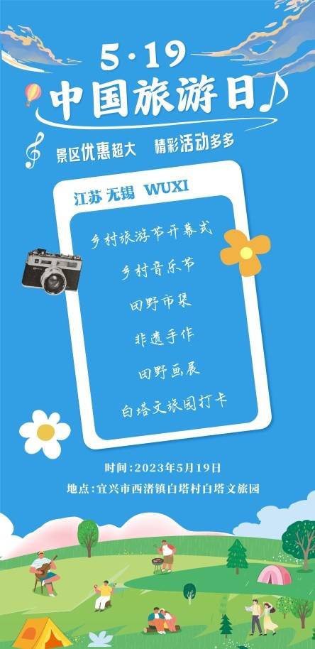 5月19日,由无锡市文化广电和旅游局、无锡市农业农村局、宜兴市人民政府共同主办的“大地欢歌·乐游田野”乡村旅游节将在宜兴市西渚镇白塔村盛大开幕。