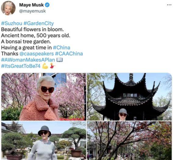 日前,埃隆·马斯克74岁的母亲梅耶·马斯克首次访华的照片在社交媒体上引起巨大轰动。