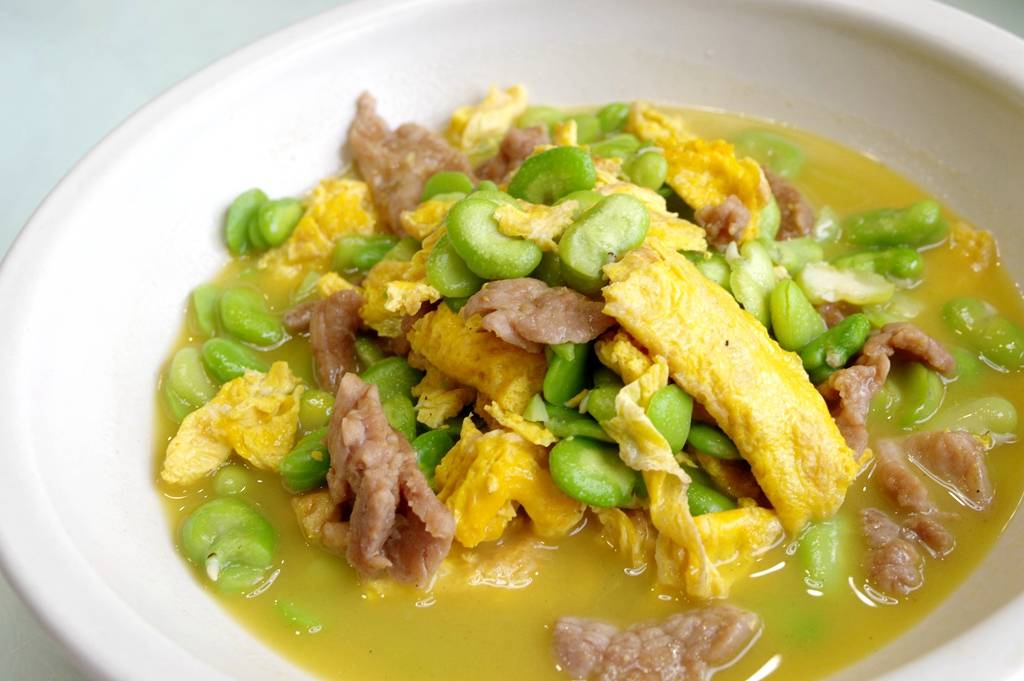 蚕豆正当季,搭配肉片和鸡蛋,意外的好好吃