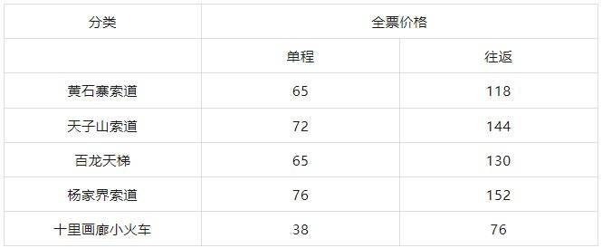 张家界武陵源景区 (张家界国家森林公园) 内小交通费用