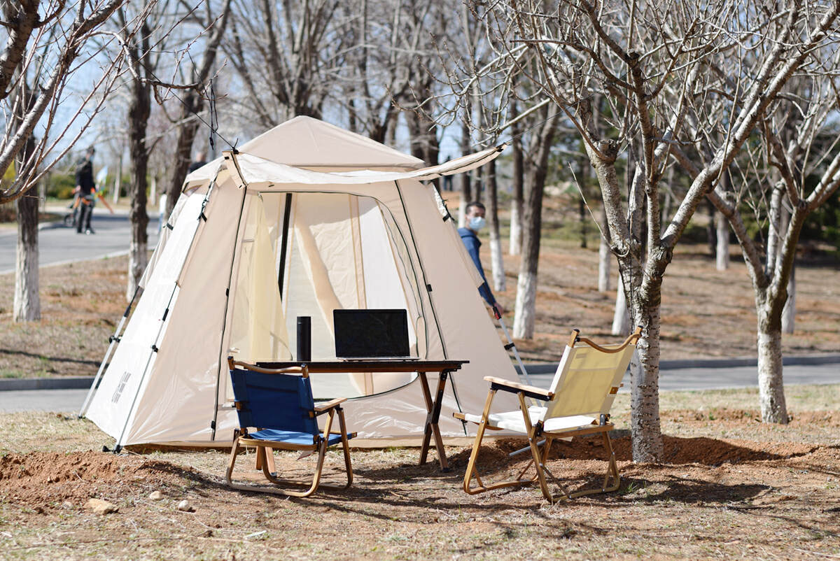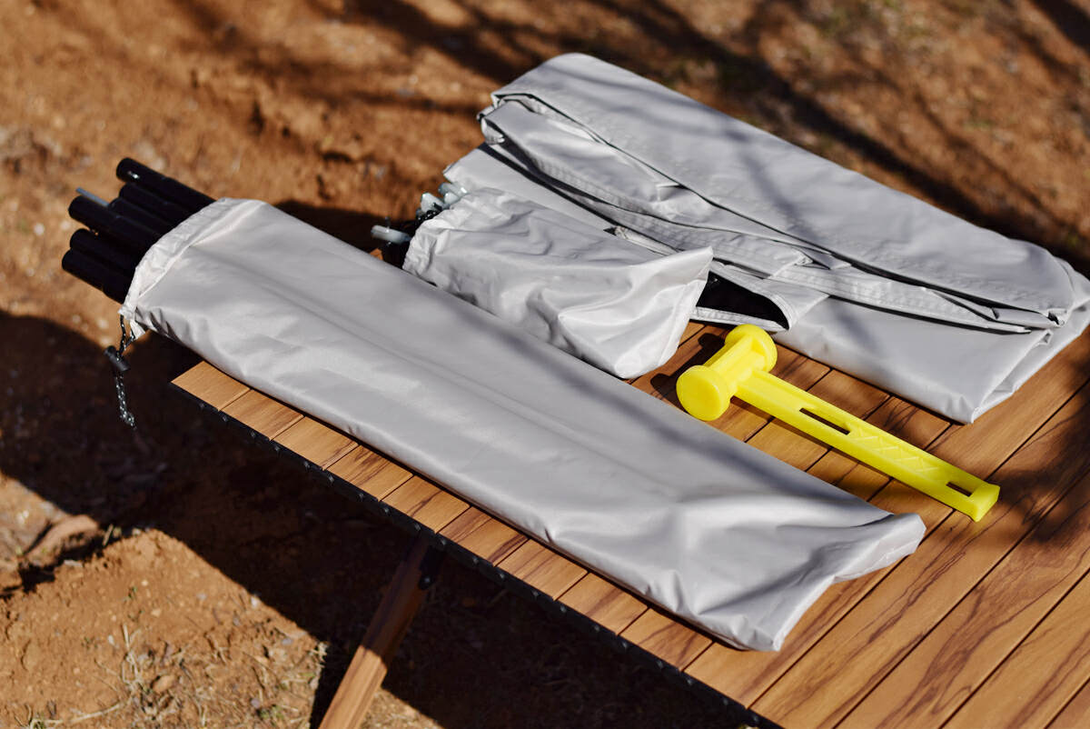 帐篷展开后还需要使用地钉将帐篷牢牢固定在地面上,这样帐篷即便遇到5级大风也不会飞走。