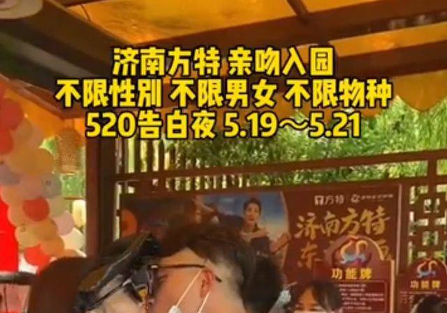 一则消息:山东济南方特游乐公园,5.19-5.21三天不限男女,不限物种,亲吻就可以免票入园玩转全场各项目。吸引了不少网友。