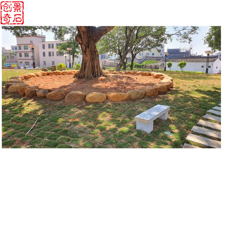 汀步黄蜡石在公园草坪中有画龙点睛的作用,给整片公园带来活力。汀步黄蜡石嵌入地面突出一种点与面的构图美感,搭配错落有致的植物,也是一种户外生活化的趣味融入。